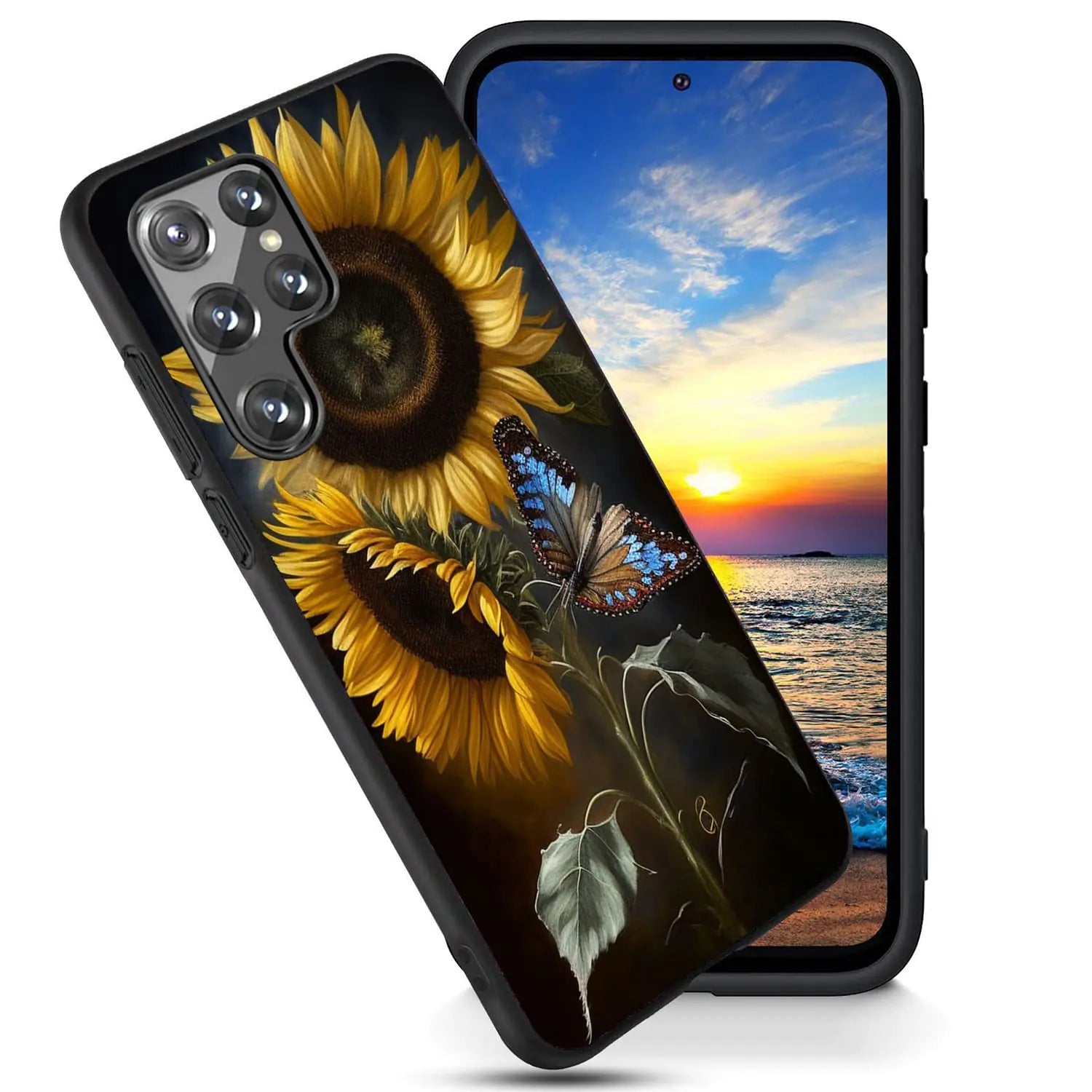 Case for Galaxy S23 Ultra CaseSoft Frosted TPU Ultra Thin CoverShock-AbsorptionAnti-Scratch Protective Case for Samsung Galaxy S23 Ultra 6.8"Sunflower Butterfly
